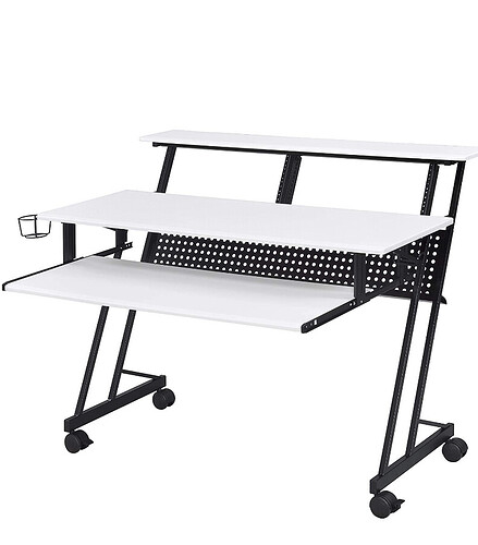 a desk has been ordered i got a desk that has 2 4u 8 inch deep rack space more for my audio equipment. The desk is a cheap music production desk ITS ON WHEELS THAT LOCK unlike apples casters