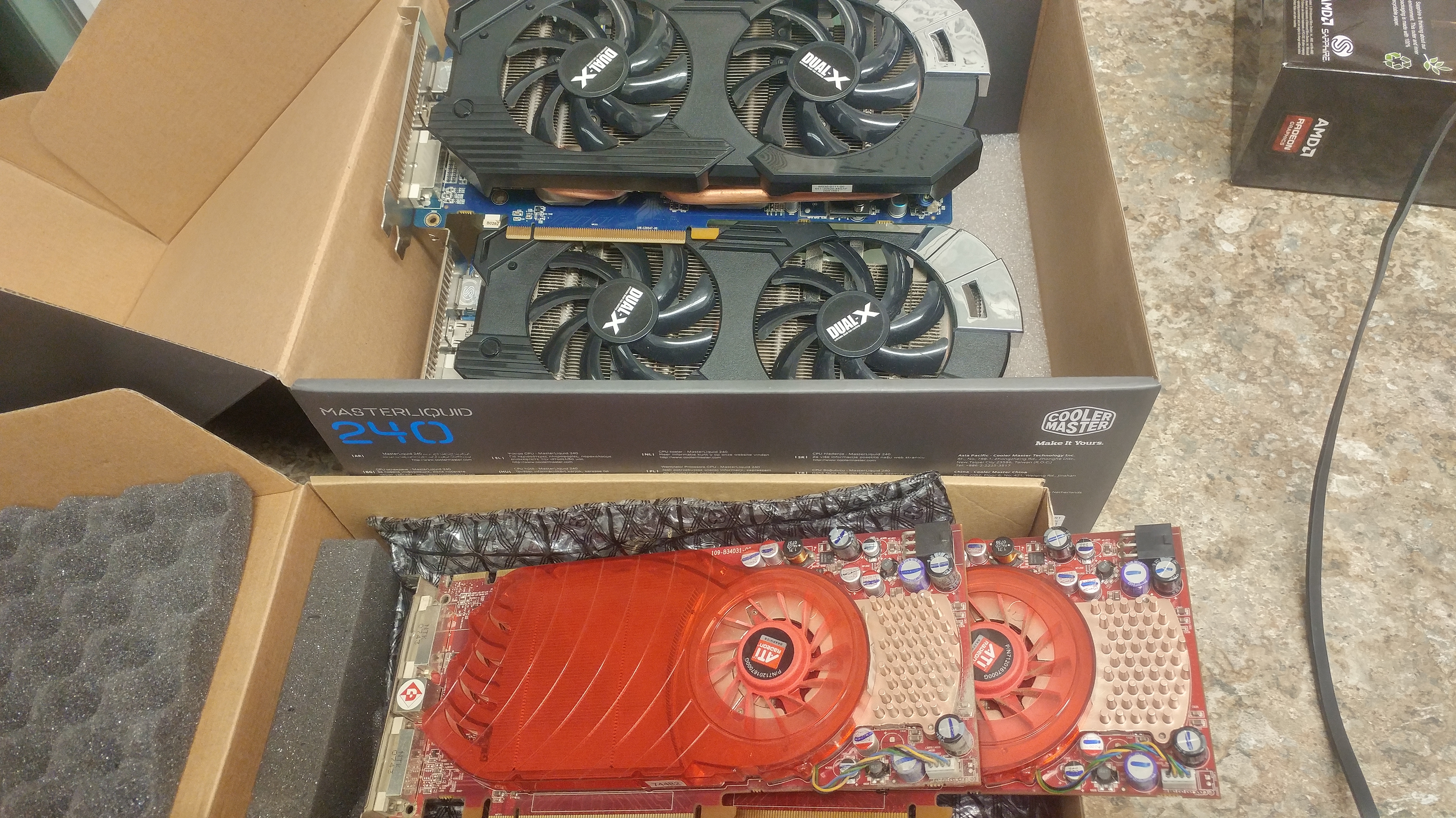 Also got two Radeon 3850s as well, lol⦠For shits and giggles could make a Xfire rig with them or something more likely ill just sell them or just hang them on a wall for show.