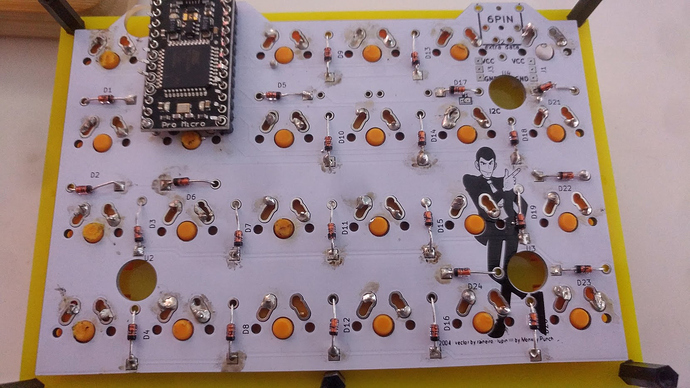 If you send a signal down R2 and receive said signal arrives at C6 then you know that key “A” has been pressed